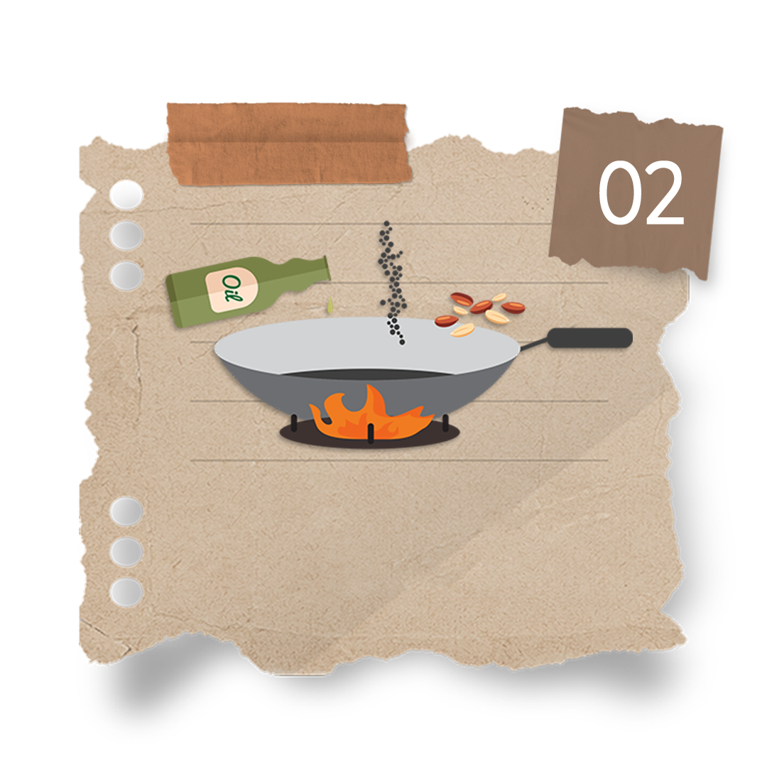 Heat 2 tablespoon oil in a pan. add black mustard seeds(1.5 g), curry leaves (1g) and peanuts(50g), saute for a minute..