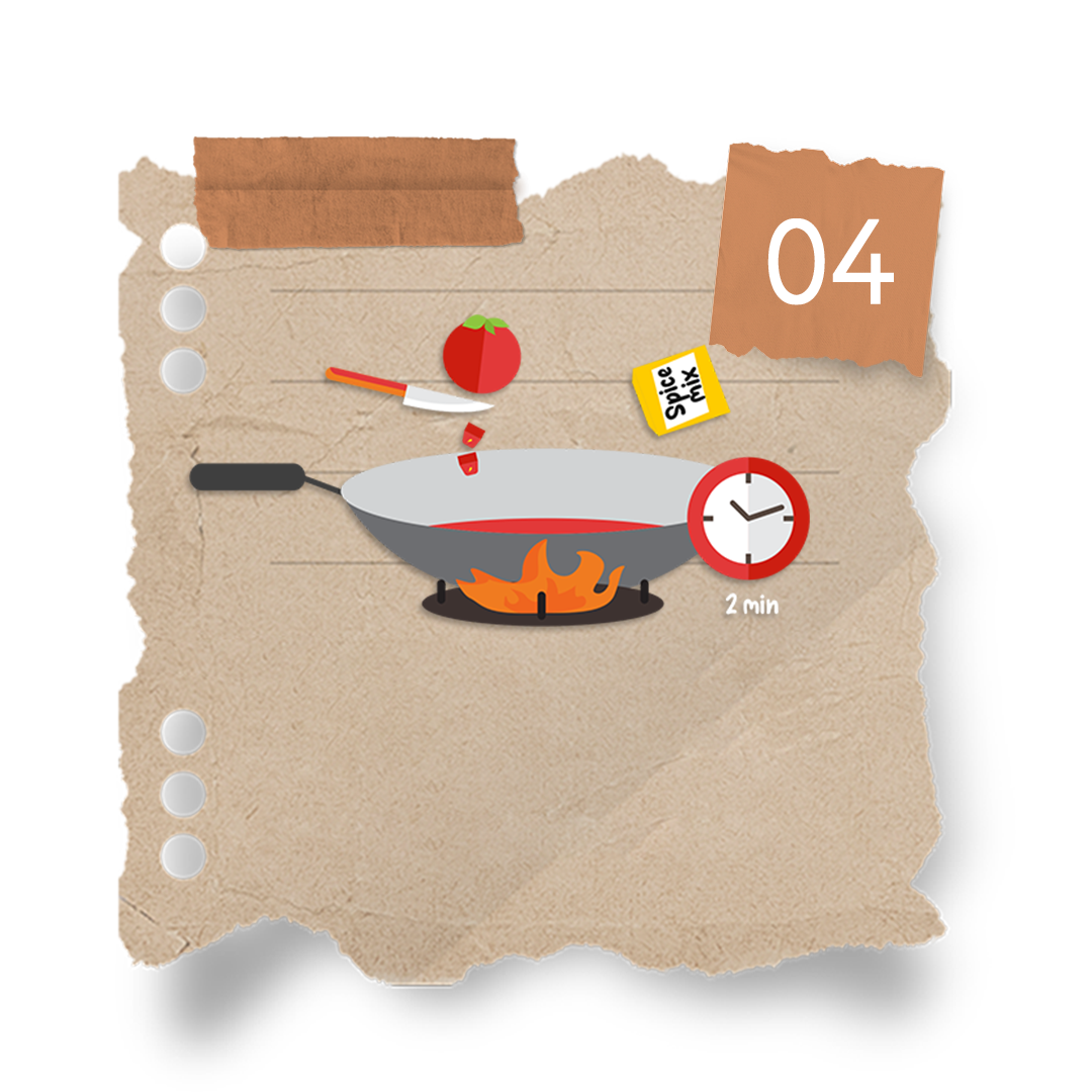 Add masaledar chana spice-mix, salt to taste & stir well until oil begins to separate. Add 60 g tomato purée & cook for 2 minutes.